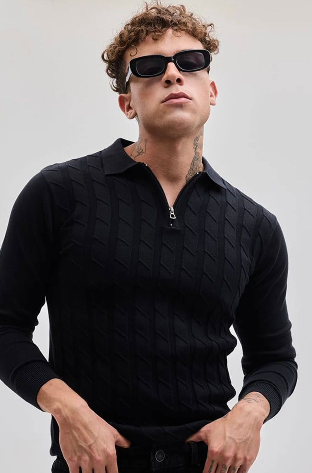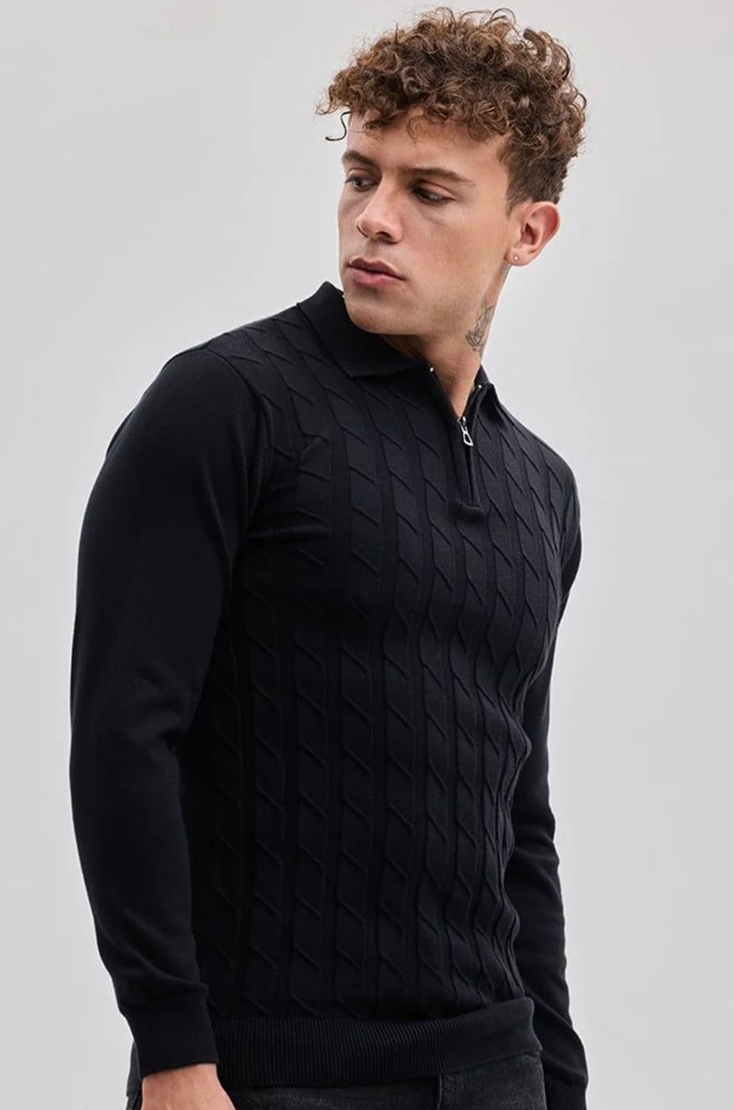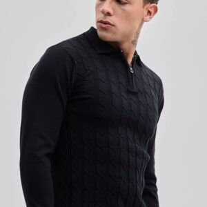 * Intricate Cable Knit: Features a distinctive, vertical textured pattern that adds depth and a premium feel to the classic black silhouette.