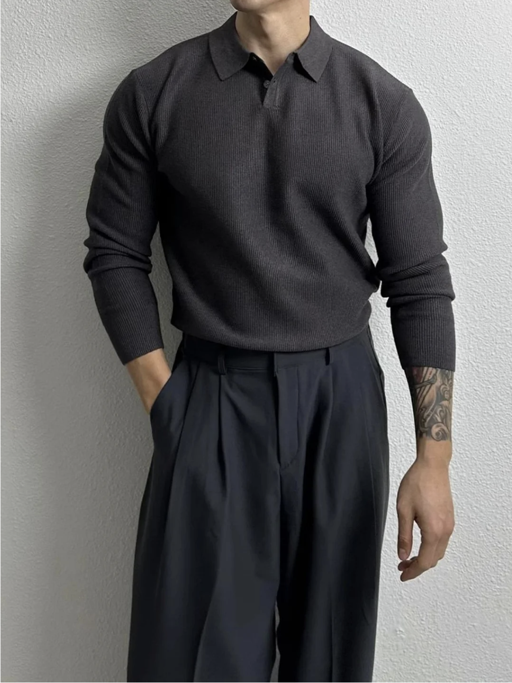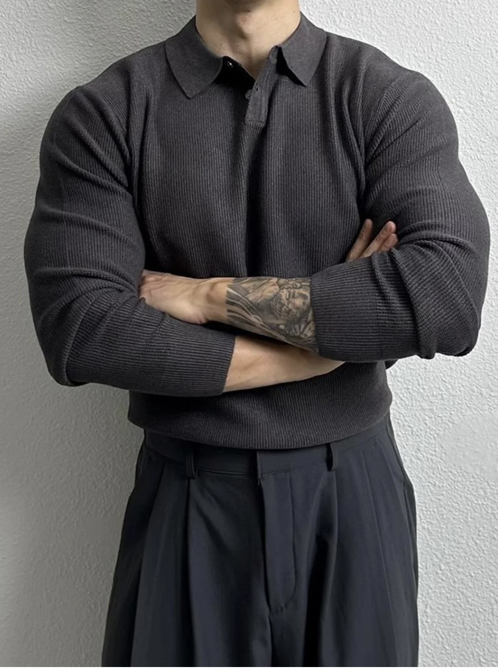 Muscle Fit The model (height 6′) is wearing a size M